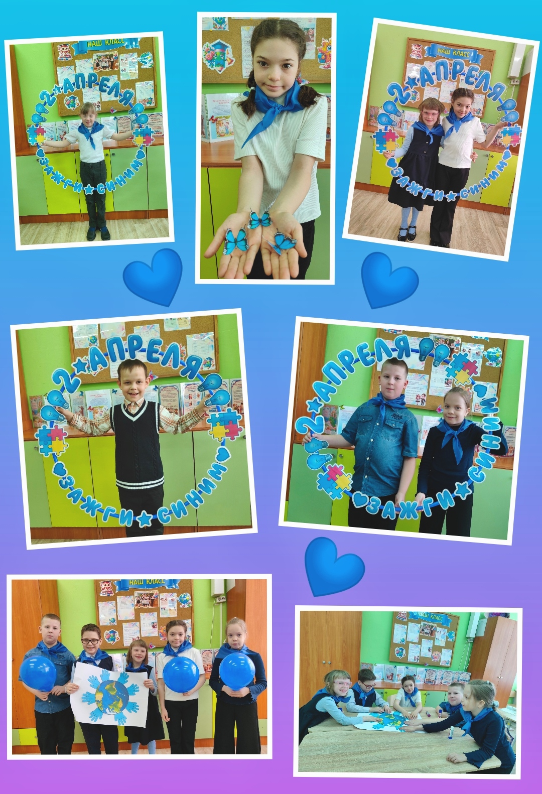 шарики, ладошки. Символический синий цвет стал не просто