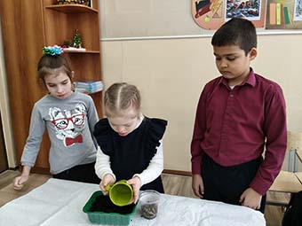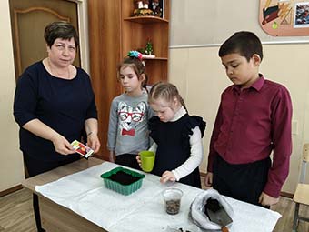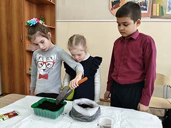 занятии занимались посадкой семян цветов. В